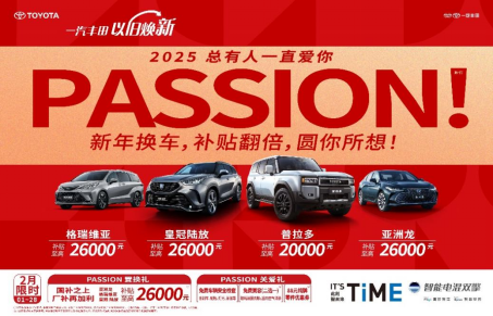 2025年初,商务部等8部门发布了关于做好2025年汽车以旧换新工作的通知,作为央企合资企业的一汽丰田积极响应,开年即为用户准备了诚意满满的宠粉大礼:置换政策再加码,厂补至高20000元,国补+厂补至高补贴26000元。其中,皇冠陆放、格瑞维亚、亚洲龙至高可享置换补贴26000元;热销车型RAV4荣放、卡罗拉锐放分别至高可享置换补贴22000元及19000元;传奇硬派越野车全新普拉多至高可享20000元,超值置换补贴涵盖一汽丰田轿车、SUV、MPV全明星车系,全面满足用户购车需求,助力用户以旧换新更轻松。