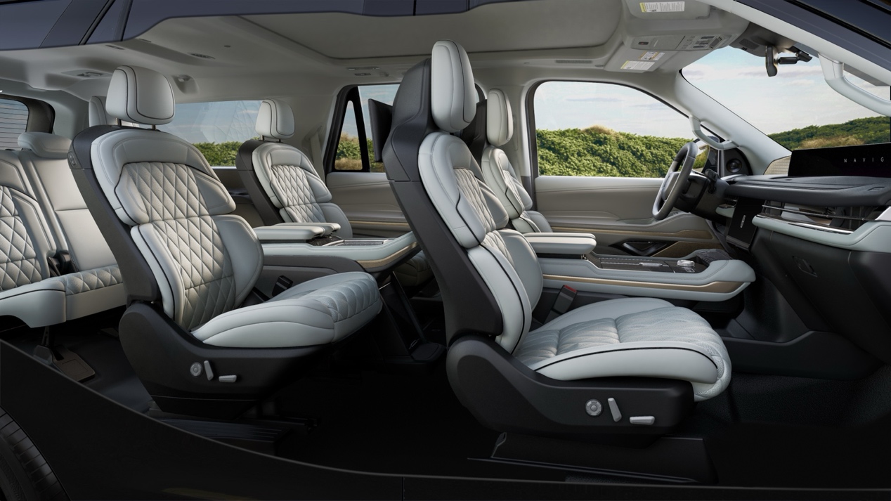 全新一代林肯领航员拥有剧院包厢般的2-2-3格局,全部乘员都能享有领航者高坐姿与统帅者视野。 “七座皆上宾”的全新一代林肯领航员,重定七座格局,细琢豪华肌理,格局瞬间打开。