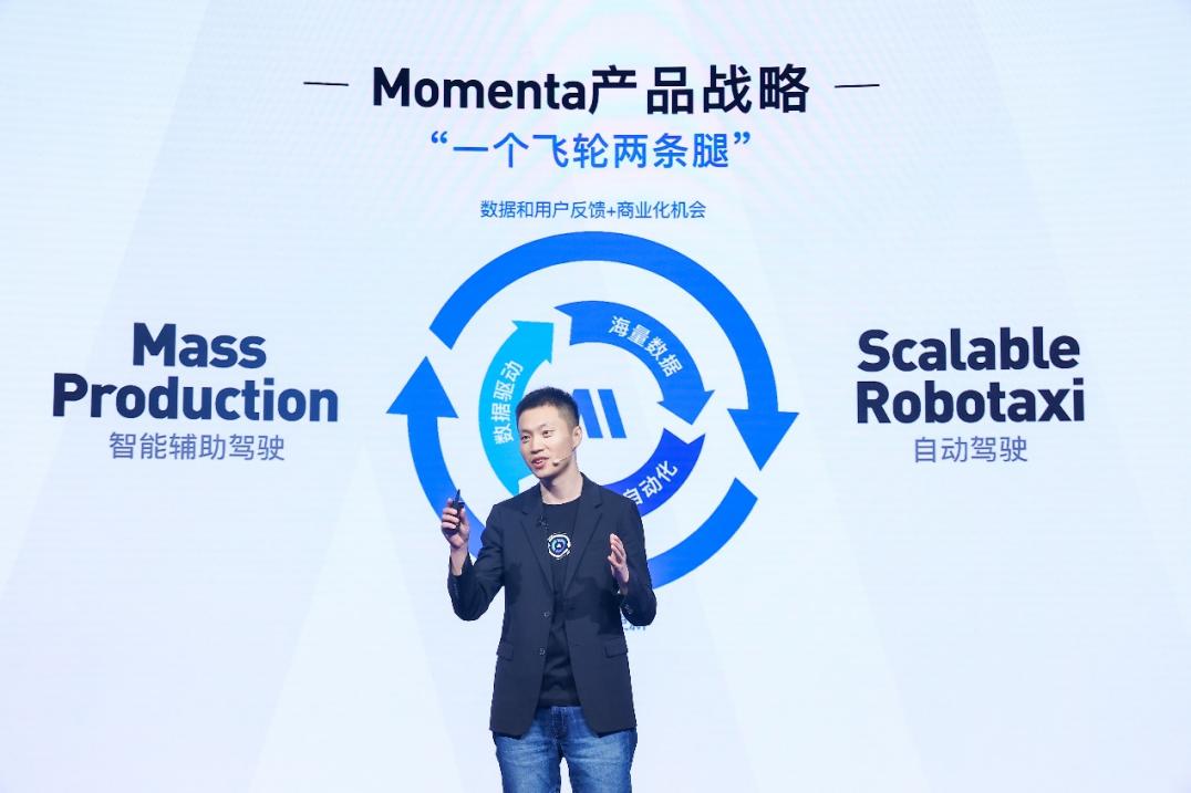 Momenta自创立以来,致力于实现可规模化的自动驾驶。要想实现必须攻克数百万个长尾问题,且要积累至少1000亿公里的数据。为此,Momenta制定并实施“一个飞轮两条腿”产品战略:依靠首创的数据飞轮,通过数据驱动的方式来解决问题。同时,Momenta坚持“两条腿”战略,智能辅助驾驶与自动驾驶Robotaxi。智能辅助驾驶能够输出源源不断的数据流,自动驾驶Robotaxi能够反馈给量产产品技术流,基于统一的传感器平台,“两条腿”相互协同,形成高效打通。