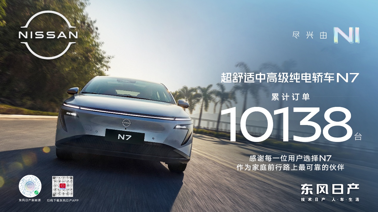 4月27日,东风日产天演架构下首款新能源战略车型——东风日产N7,在广州白云国际会展中心正式上市,售价区间为11.99万-14.99万。产品上市即热销,累计订单超10000台。