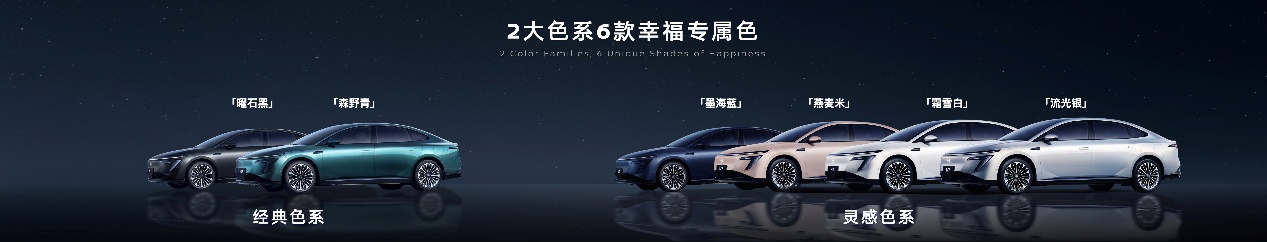N7的车色灵感来源于大自然,共两大色系6款颜色可选,包括流光银、墨海蓝、霜雪白、燕麦米4款灵感色系,以及曜石黑、森野青2款经典色系。车漆采用豪华车同级标准的耐老化工艺,用10年不掉色不失光。