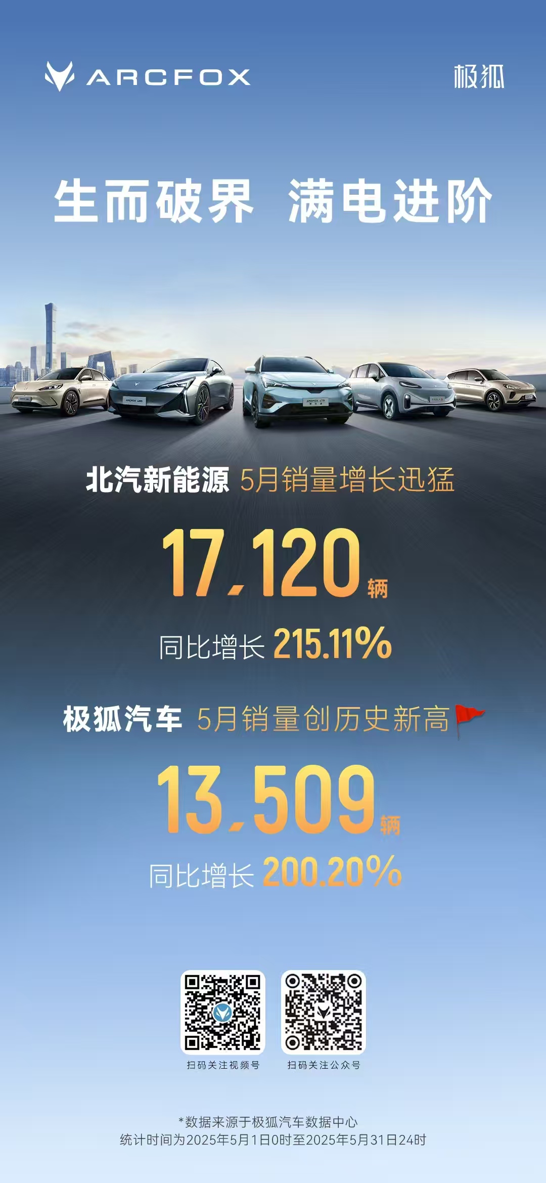 这是极狐继今年3月之后再次站上1.3万辆大关,同时还创造了品牌月销历史新高。北汽新能源和极狐双创新高,为行业提供了通过差异化竞争突围向上的全新解题思路。