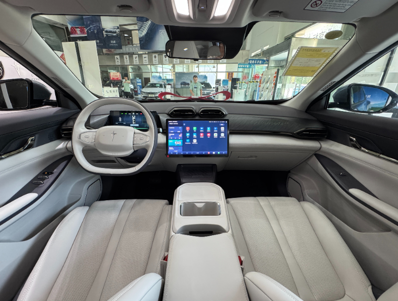 坐进车内,首先感受到的是其所营造出的上乘质感和科技氛围。中控台运用搪塑工艺和亲肤的皮革材质进行大面积覆盖,触感柔软。主驾座椅配备了加热、通风和记忆功能,为驾驶者提供了舒适的驾乘体验。