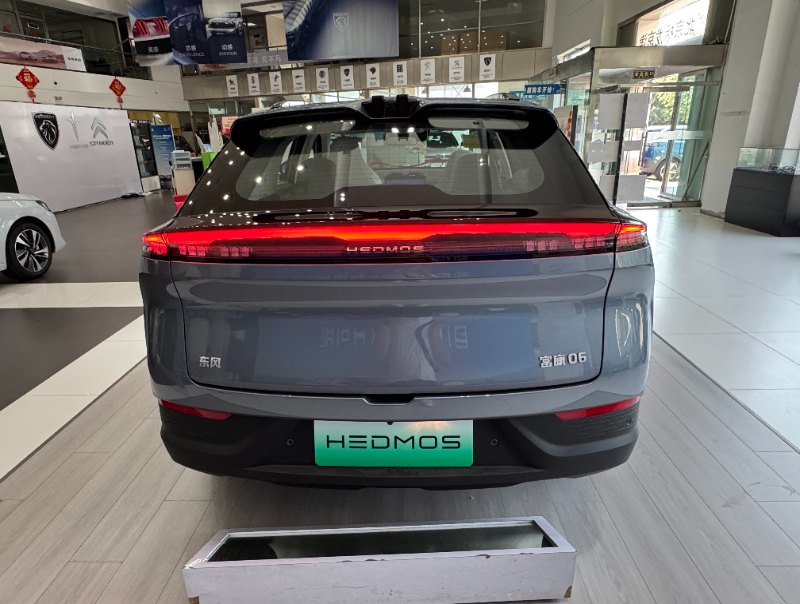 示界06采用目前主流新能源车常用的贯穿式尾灯,点亮后,不仅拉伸了车尾的横向视觉宽度,还与中间醒目的 “HEDMOS” 英文车标相互呼应,进一步强化了品牌形象。车尾上方双段镂空造型的扰流板设计,提升了车辆的空气动力学性能,不仅好看,行驶起来也非常稳。同时搭配中间立体感十足的双灯组设计,让示界06的车尾在夜晚也极具辨识度。