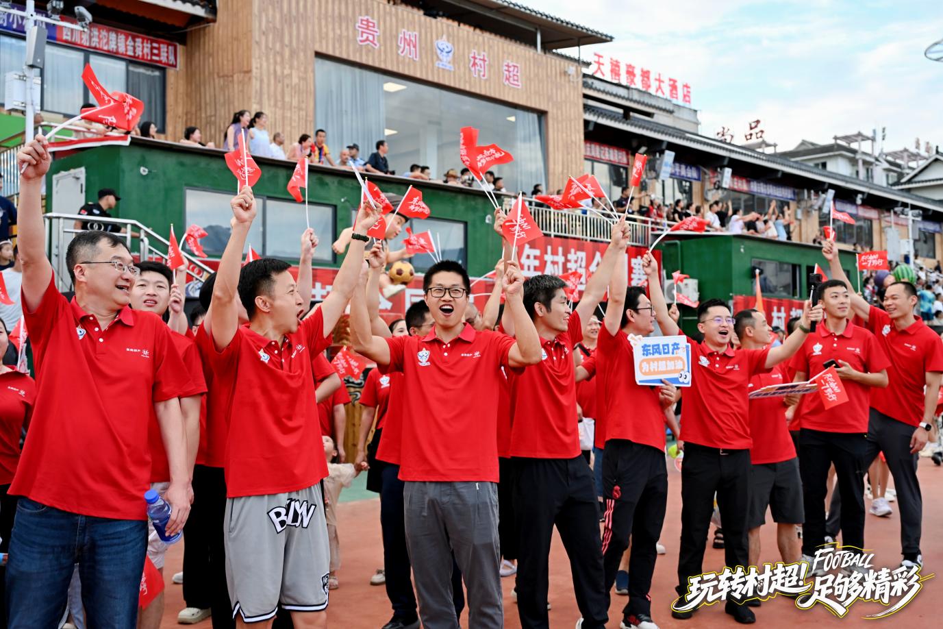 “好球!”在村超赛场边,车友们的呐喊声与当地村民的欢呼声交织在一起,汇成最动人的乐章。绿茵场上,穿着东风日产球衣的村民球员们满场飞奔,汗水浸湿了衣背却挡不住眼里的光芒——有上场时的雀跃,有带球突破时的利落,还有射门瞬间的专注。