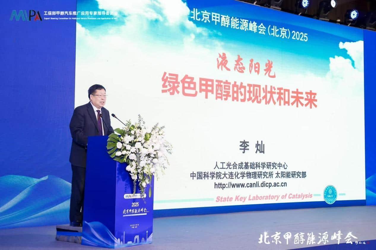 中国科学院院士、北京甲醇能源峰会主席李灿带来了主题为《液态阳光绿色甲醇的未来》的报告。他认为,“液态阳光”——甲醇能够规模化就地消纳光伏风电,解决弃风、弃光问题;能够解决氢能制备、储存和运输的安全性和成本问题;能够资源化转化二氧化碳,解决工业刚性排放二氧化碳。