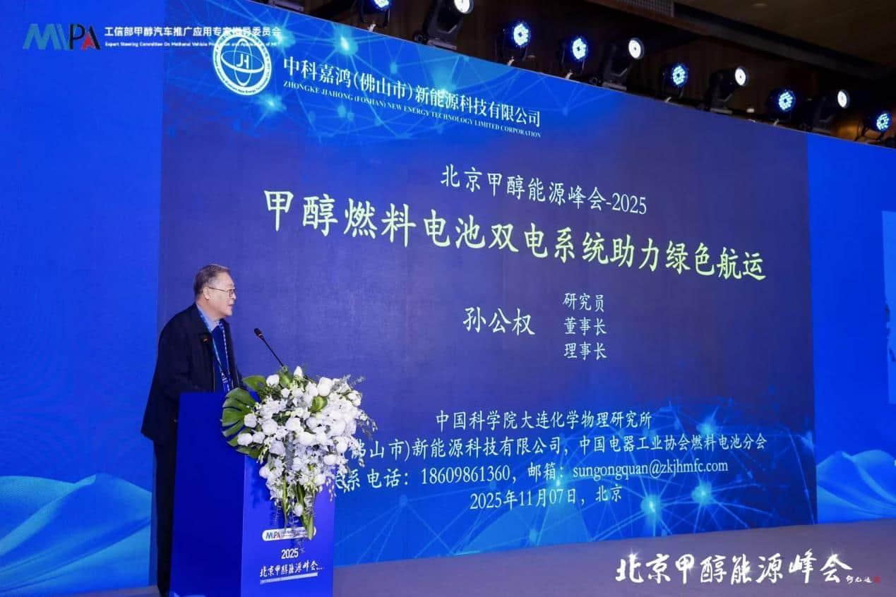 中国科学院大连化学物理研究所研究员孙公权带来了题为《甲醇燃料电池双电系统助力绿色航运》的报告。他表示,3000吨船用双电系统使用甲醇燃料每年比柴油可节省100万—200万元。运行约8000小时后,甲醇燃料电池总成本将低于柴油机。