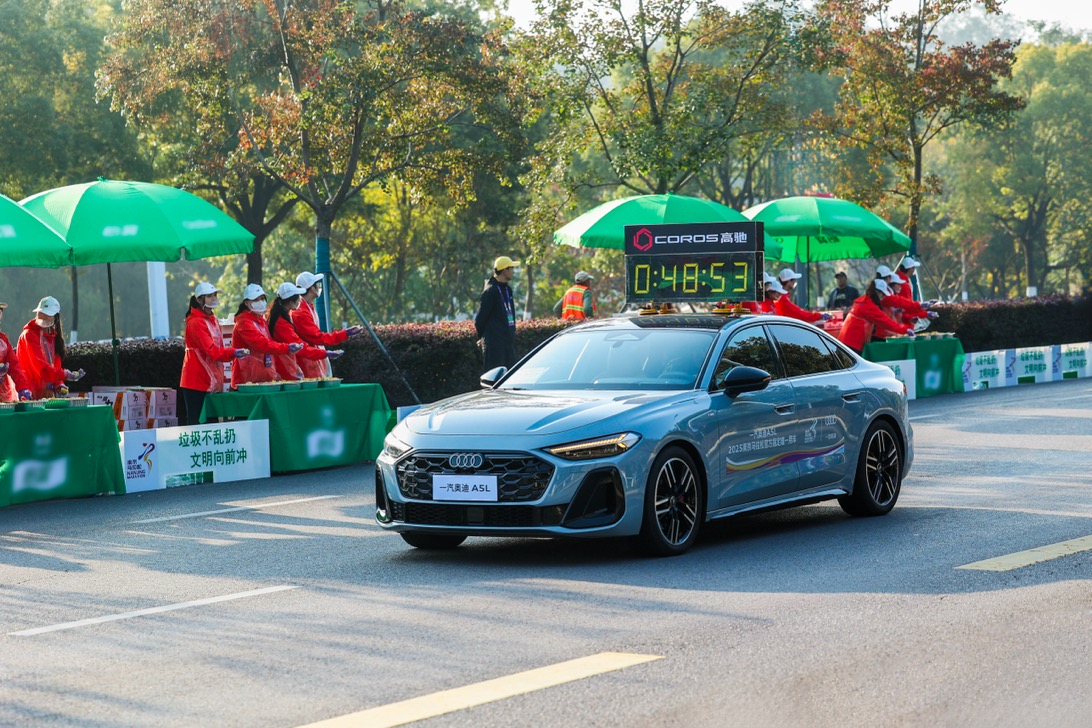 作为赛事官方唯一指定用车品牌,一汽奥迪领跑2025南京马拉松