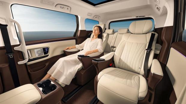全车93处声学包+5块双层隔音玻璃、米其林静音轮胎等,怠速噪音低于图书馆标准,120km/h时速下后排交谈依然清晰。17.3英寸高清吸顶屏,后排秒变家庭影院;智能冷暖冰箱(-6℃~50℃),夏天冰镇饮料,冬天保温热饮;400mm超低地台、549mm两级长扶手。