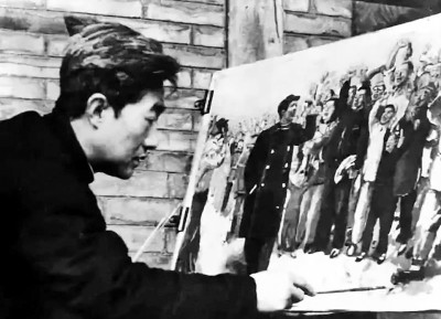 徐悲鸿正在创作《毛主席在人民群众中》。