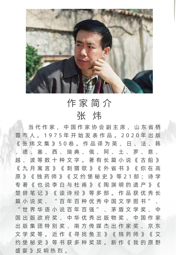张炜是一位创造力惊人的作家,在他漫长的写作之道上,在他规模巨大的文本之中,他只遵从他那颗为大地守夜的雄壮之心。他在写作中触及到的整体性是以视觉与先锋的方式,来展现人与动物、人与自然、人与人、人与人性的关系,从而进入他小说中的任何主题,都会被他创造出来的一种神秘美学照耀。