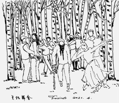 那是啄木鸟啄木的节奏,是木管吹出的节奏,也是酸苹果木手杖和花椒木手杖敲打在地上的节奏、年迈的舞者脚下的节奏,那是生命的节奏。(肖复兴)