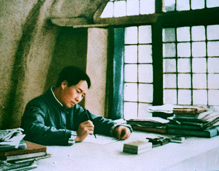 1938年,毛泽东在延安窑洞撰写《论持久战》。(资料照片)TAKEFOTO供图