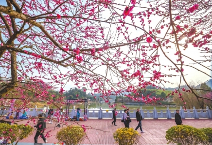 游人在重庆市南川区梅华园赏梅游玩。新华社发