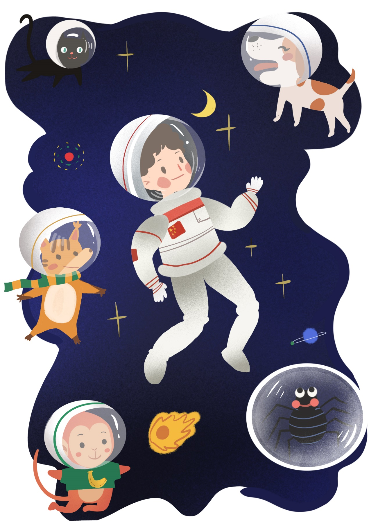 贴春联、挂灯笼,喜庆的年画、红红的中国结……正在太空“出差”的神舟十三号航天员乘组把中国空间站装扮得年味十足。然而,真实的太空并不像人们想象的那样浪漫。进入太空,人类要面对的更多是险境而非仙境。“天高地迥,觉宇宙之无穷”,在探索浩瀚宇宙的旅程中,人类一次又一次地感受到自己的渺小,一次又一次地感受到成功的喜悦与失败的心酸。人类之所以能够走出地球,动物们的铺垫和牺牲发挥了重要的、不可替代的作用。在人类进入太空之前,为了解人在太空中可能会遇到哪些问题,科研人员往往利用动物来做开路先锋。1957年11月3日,小狗莱卡乘坐Sputnik 2号生物卫星成功进入了太空,这是动物中真正进入太空的“开路先锋”。1990年10月5日,我国进行了首次携带高等动物的空间轨道飞行试验,这次试验验证了生物搭载舱系统的性能和可靠性,积累了生命保障系统研制和飞行试验的数据,为中国人自己的空间站诞生积累了大量宝贵的第一手资料。