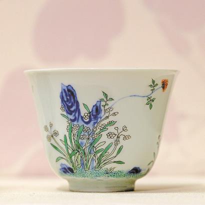 景德镇有些著名的窑厂,更是专为宫廷烧制十二花神杯,为皇室提供特别服务。每只瓷杯上按一年十二个月,各绘一种应时花卉,指代历史上的著名女性,并题相应的诗句,底款为两行六字楷书款。春天三月分别是水仙花对应洛神,玉兰花对应杨贵妃,桃花对应息夫人。这些花神杯通体以五彩装饰,点缀青花,在形制上常作撇口,深腹,圈足,胎薄体轻,精巧玲珑,绘画精细,观之秀巧玲珑、精美绝伦。这些宫廷瓷杯仿佛能够照彻我们心灵,倒满春茶,足够我们用尽一生来畅饮。