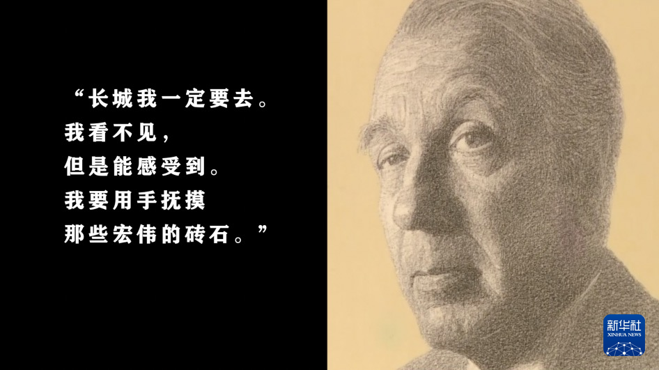 新华社布宜诺斯艾利斯8月31日电 “长城我一定要去。我看不见,但是能感受到。我要用手抚摸那些宏伟的砖石。”1981年12月,阿根廷文学巨匠博尔赫斯在家中接待来访的中国外交官黄志良时如是说。
