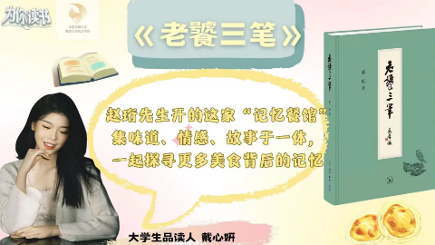 新华悦听,值得一听。大家好,我是大学生品读人来自中国传媒大学播音主持艺术学院的戴心妍。今天要和您分享的是赵珩先生的《老饕三笔》。