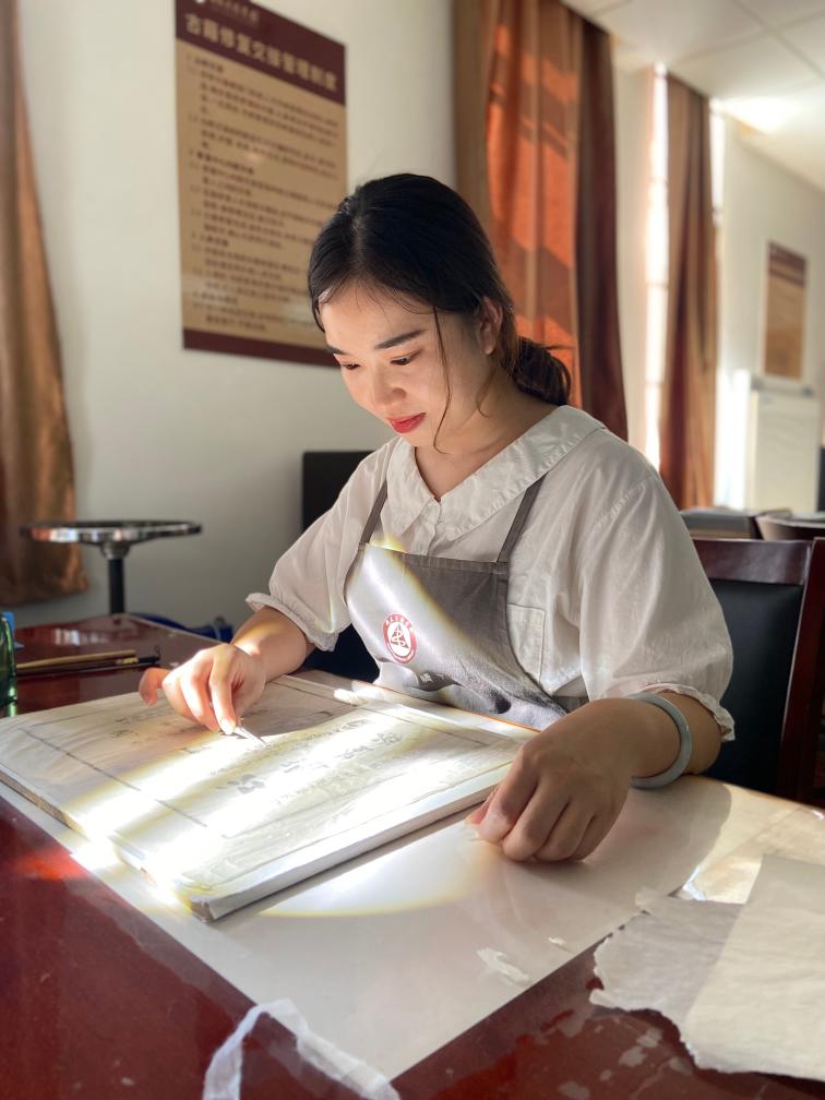 新华社合肥10月6日电(记者刘美子)清晨的阳光透过层叠的梧桐叶,洒落在有着百年历史的安徽省图书馆建筑上,在这里,古籍修复师耿宁开始了一天的工作。她小心翼翼地揭起一张“伤痕累累”的待修书叶,对着光仔细查看,选配补书的纸张。这是古籍修复的重要一环,耿宁丝毫不敢怠慢。