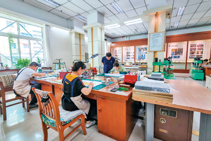 甘肃省古籍保护中心修复人员在工作室内开展古籍修复工作(2023年9月19日摄) 甘肃省图书馆供图