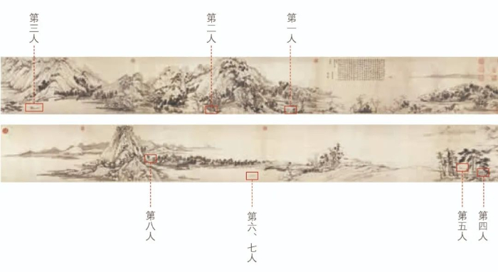 说第九位人物之前,我们先来看看上图展示的已经形成共识的八位人物。从形象上看,这八位人物大概为高士、樵夫和渔父。详细解读这八位人物之前,我们不妨先一起找寻一下隐藏的第九位神秘人物。