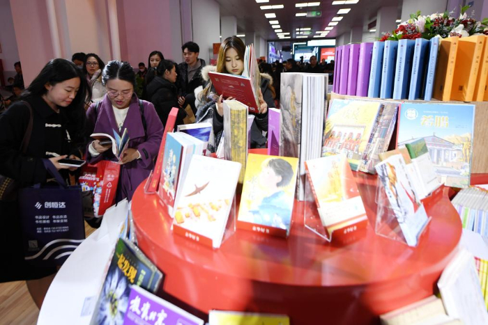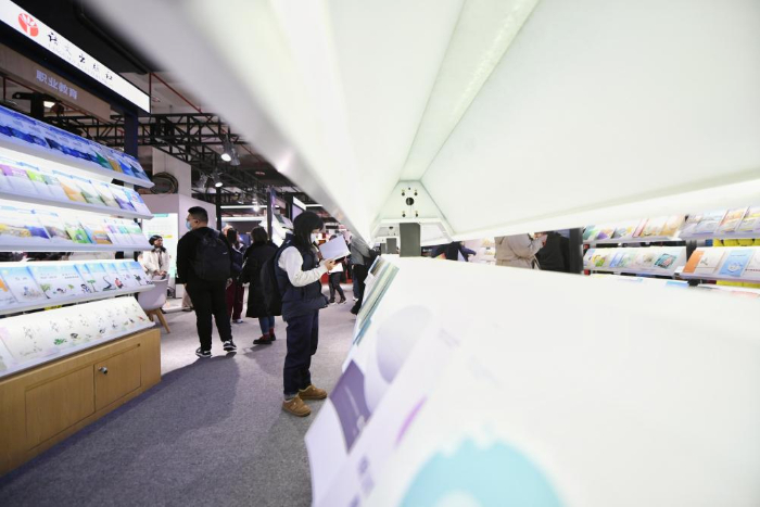 1月11日,参观者在2024北京图书订货会上阅览书籍。
