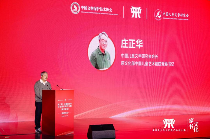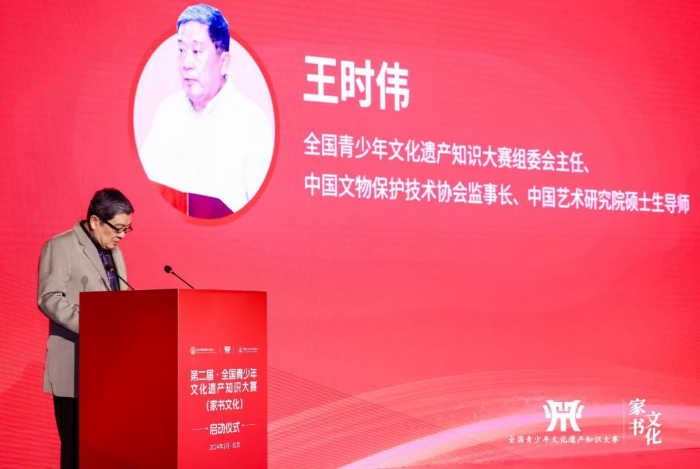 启动仪式上,中国儿童文学研究会语言艺术委员会主任吴问涛介绍了“全国青少年文化遗产知识大赛(家书文化)”项目的核心理念和愿景。作为教育部办公厅 2022-2025学年白名单赛事活动之一,大赛是覆盖全学龄段的青少年文博类知识大赛,以“全学龄覆盖”“科学严谨的遴选”“增强文化自信”和“弘扬传统文化”为四大特色,使比赛兼具公平性、专业性以及文化价值。大赛以“文物里的中国”“阅见非遗”和“典籍里的中国”为主题,通过家书这一传统形式,让青少年深入了解和传承中华优秀传统文化。