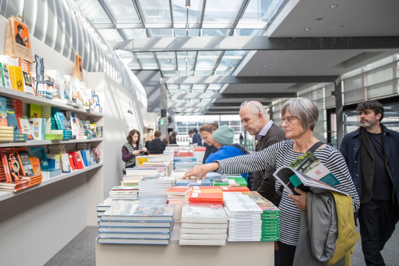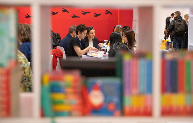 10月16日,人们在德国法兰克福书展的主宾国——意大利展区参观。