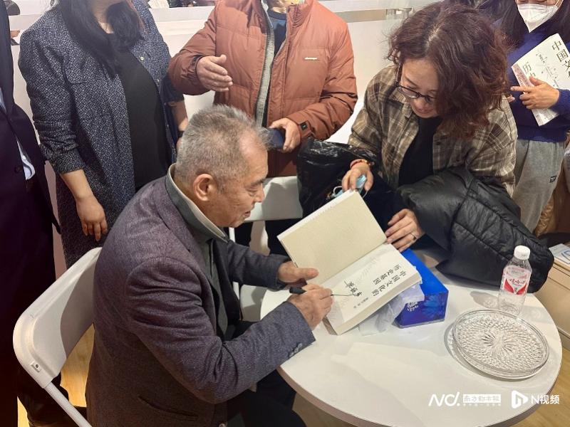 梁晓声在活动现场为读者签名。