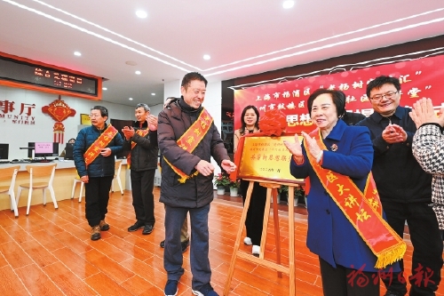 16日上午,上海市杨浦区“老杨树宣讲汇”成员赴鼓楼区东街街道军门社区参观交流,“老杨树宣讲汇”——“军门社区大讲堂”共学新思想联盟同日在军门幸福里揭牌。