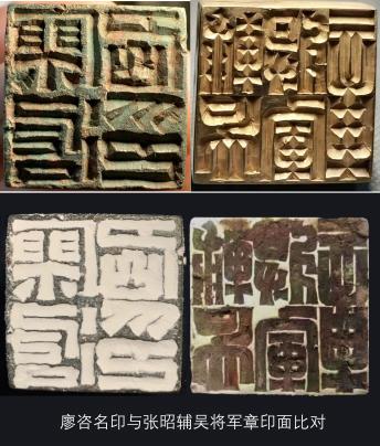 杜晓《汉代官用私印小议——以职官姓名印和“名印”私印为中心》的专题文章,论述长沙五一广场东汉简中所见“名印”,是在汉代官府的文书运行中以私印代替官印封印的情况。研究发现,“名印”的印主要集中于属吏与散官等无官印者,这些无官印的散吏又以掾史身份为多,这些名印虽然都是私印,但行政文书中几乎清一色的“名印”封泥记录,似乎表明此种印在临湘县掾史、亭长中大规模使用,这可能是当时官方统一要求的结果。由此可见,彼时官印与私印在用印中的界限松动,印的官私属性相对模糊,在官吏所用的私印内容分化出“名印”私印。如《长沙五一广场东汉简牍》第1671号“北部贼捕掾陈林名印”、简号1719“兼左部劝农贼捕掾秦冯名印”等相类似文书格式可以找出二十几处,这些文书其特别之处,并未将无官印之吏本人的印称为私印,也不强调这些印属于“私”印,而是更明确的“名印”之称指代。这种“姓名+名印”以私印行事代替官印文书的印章,也纳入官印范畴中。目前尚未发现五一广场东汉简记录“名印”相对应的封泥和印章实物,那么“廖咨名印”这方印章应该是可以作为替代研究的实物资料。