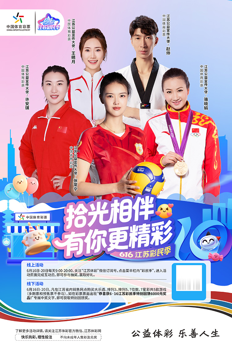 2025年“616江苏彩民季”,线上线下福利拉满,精彩不容错过!快来和江苏体彩一起,为责任与公益助力,收获幸运与欢乐,书写属于我们的精彩篇章!
