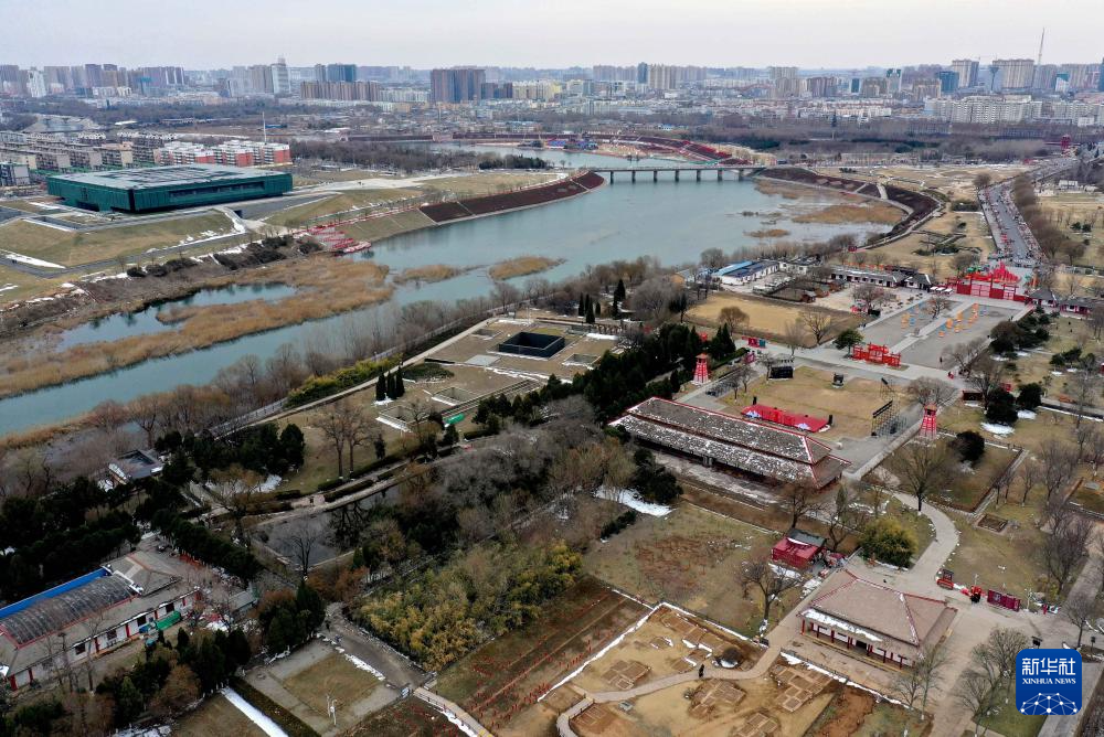 这是2024年2月23日拍摄的河南安阳殷墟宫殿宗庙遗址(无人机照片)。