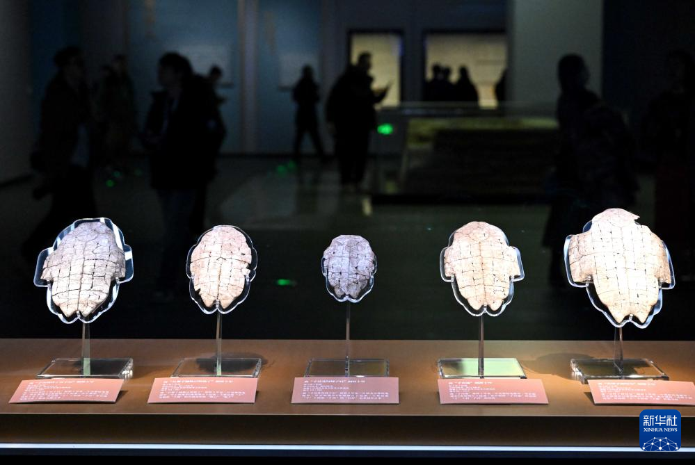这是2024年2月26日拍摄的河南安阳殷墟博物馆新馆内展出的刻辞卜甲。