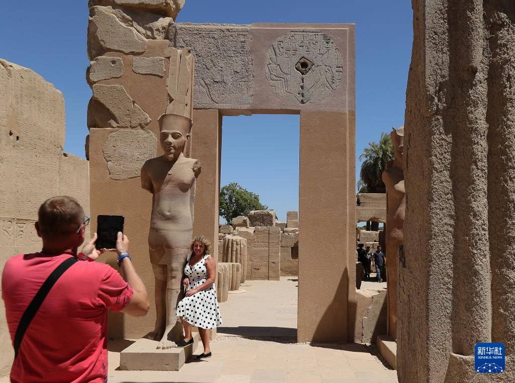 2024年4月8日,游客在埃及卢克索神庙拍照。