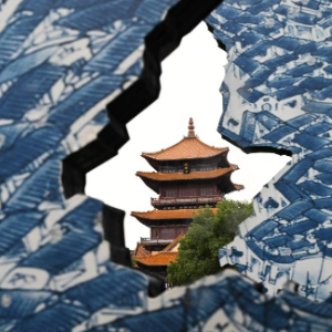 细雨中,龙珠阁前破碎的青花瓷片旁,依然聚集着排队拍照的人群。照片里,从缝隙中显露的龙珠阁姿态各异,游客们相互对比,面露欣喜。