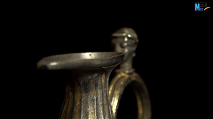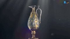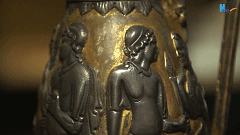 这件波斯王朝的酒具,是在萨珊时代的巴克特里亚地区制造而成,距今已有1500年历史,壶身上的雕刻以连环画的形式讲述了希腊神话故事里的内容。