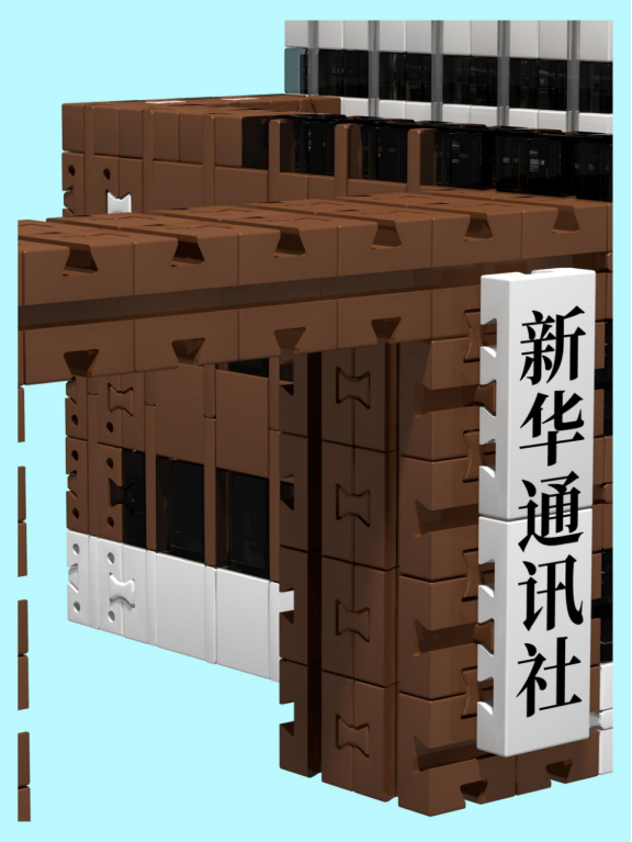 我们将传统榫卯文化融入到积木设计中,将其与现代的新华社新闻大厦相结合,以别具一格的积木形式展现传统文化的迷人魅力与蓬勃活力,展现新华大楼的时尚气息与权威风范,同时也让更多人深刻领悟新华社的重大价值与神圣使命。