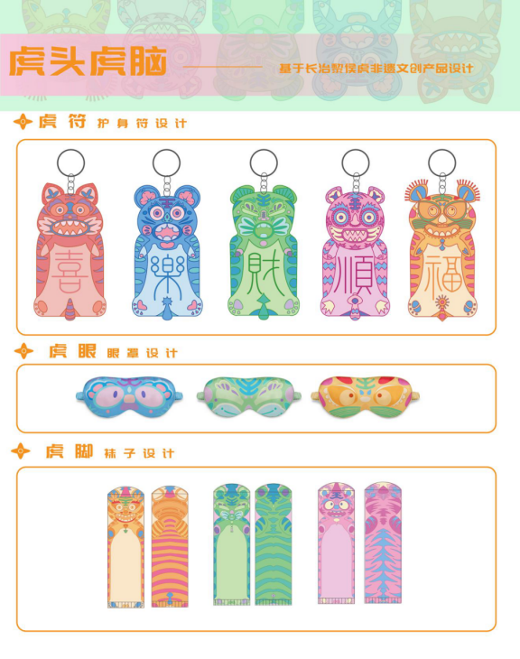 设计灵感来源于国家非物质文化遗产之一,山西省黎城县的传统手工艺黎侯虎。设计的形象可爱新颖,颜色鲜艳。