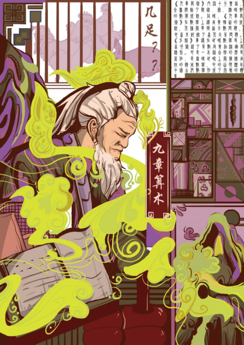 以我国古代数学模版书《九章算术》为设计主题,意在体现我国古人对于数学的热爱与执着,又为传承我国的优秀传统精神所创作的主题海报。