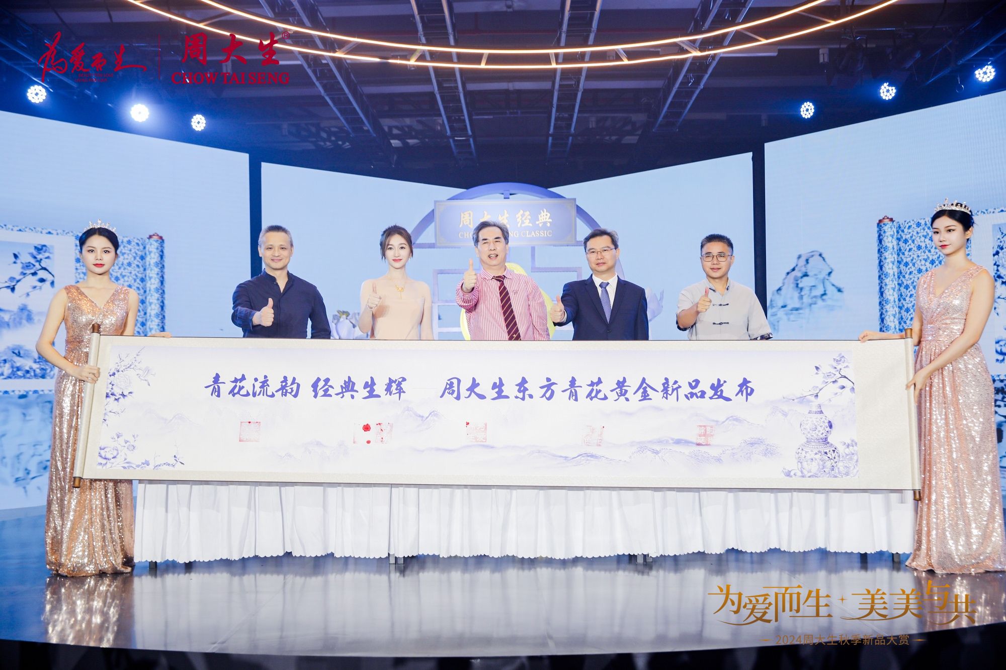 2024年9月10日,2024周大生秋季新品大赏于深圳水贝壹号盛大举行。此次活动聚焦黄金珠宝的最新流行趋势,重磅发布了周大生国家宝藏、幸福花嫁、国际艺术珠宝、周大生经典东方·青花等极具代表性的系列新品,旨在打造一场行业顶级的珠宝盛宴。周大生珠宝董事长周宗文,周大生经典品牌大使李小冉、中国青花非遗手艺人、陶瓷世家“孙公窑”第四代传承人孙立新莅临现场,共同见证这一重要时刻。