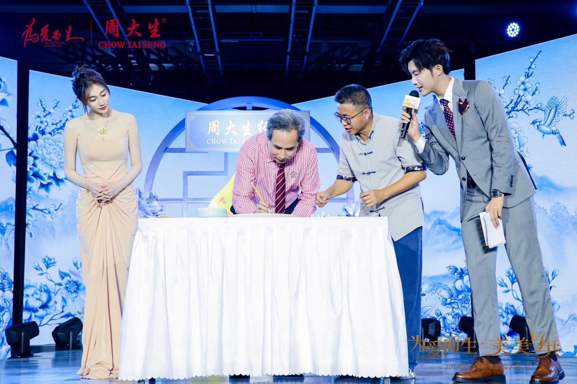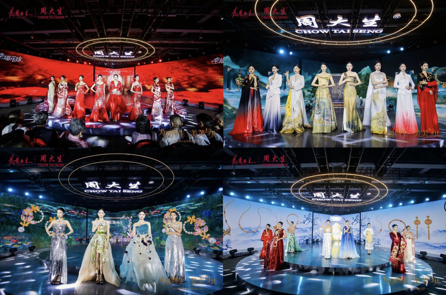 伴随着周大生董事长周宗文一席昂扬的致辞,正式宣告2024周大生秋季新品大赏的开始,一场横跨时间和空间的时尚探索之旅就此开启。品文化艺术之韵味,赏黄金珠宝之风华,周大生幸福花嫁、国家宝藏、炽热梵高、莫奈花园、东方·青花系列新品等涵盖传统文化、国际艺术等多重风格的黄金珠宝与一众佳人交相辉映,让东西方文明交融,更为古今搭起对话的桥梁。