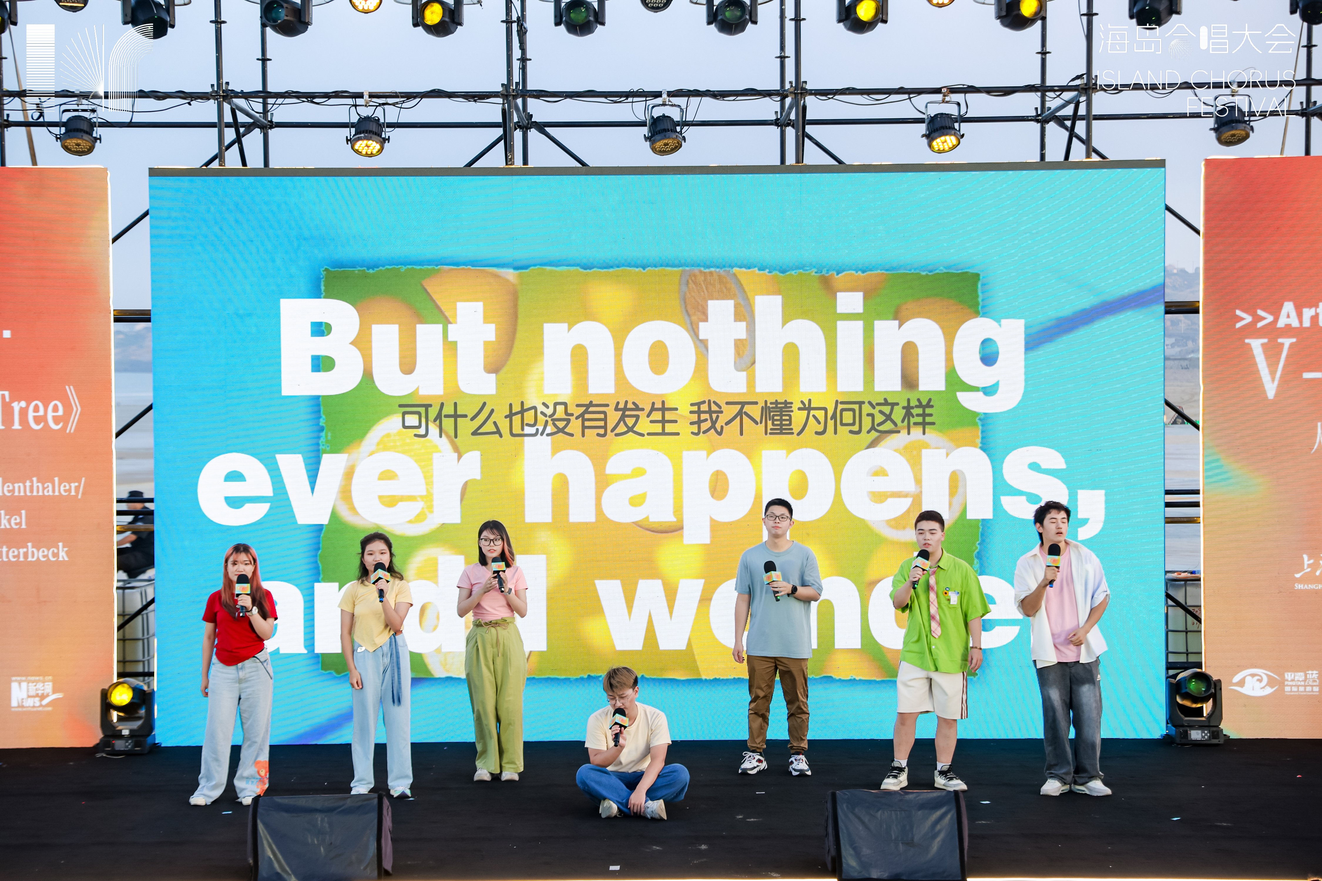 中央音乐学院CAC阿卡贝拉人声社团激动地说:“这次表演的地点非常特别,在舞台上往前一看是观众,往右一看是大海,这种体验太幸福了,想一辈子在这里唱歌。”