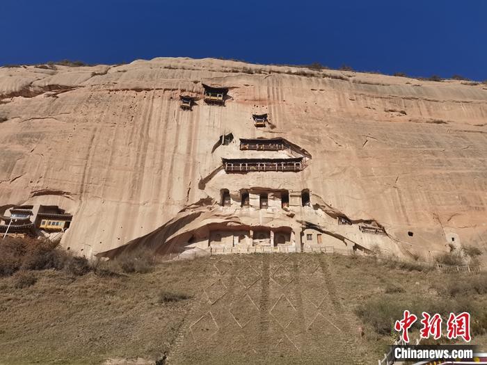 金秋十月,不少人前往马蹄寺石窟群参观。中新网记者 上官云 摄