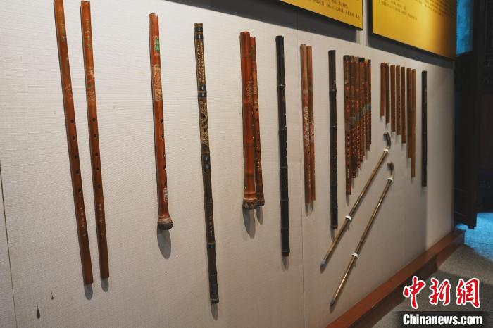 图为贵州玉屏箫笛博物馆里展示的玉屏箫笛。周燕玲 摄