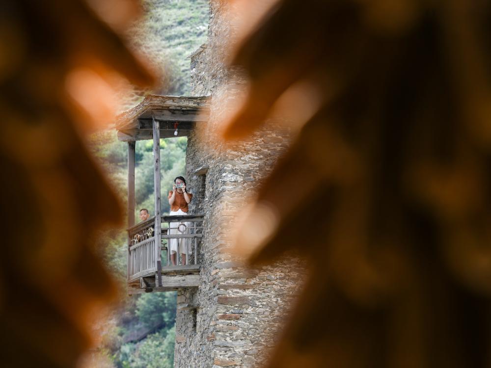 游客必去之处是最高处的碉楼。沿山而上,爬过层层独木梯,登上数丈高的碉楼,山峦河谷一览无余。羌族群众在碉楼上供奉着白石和羊角,檐下则是金灿灿的玉米棒。