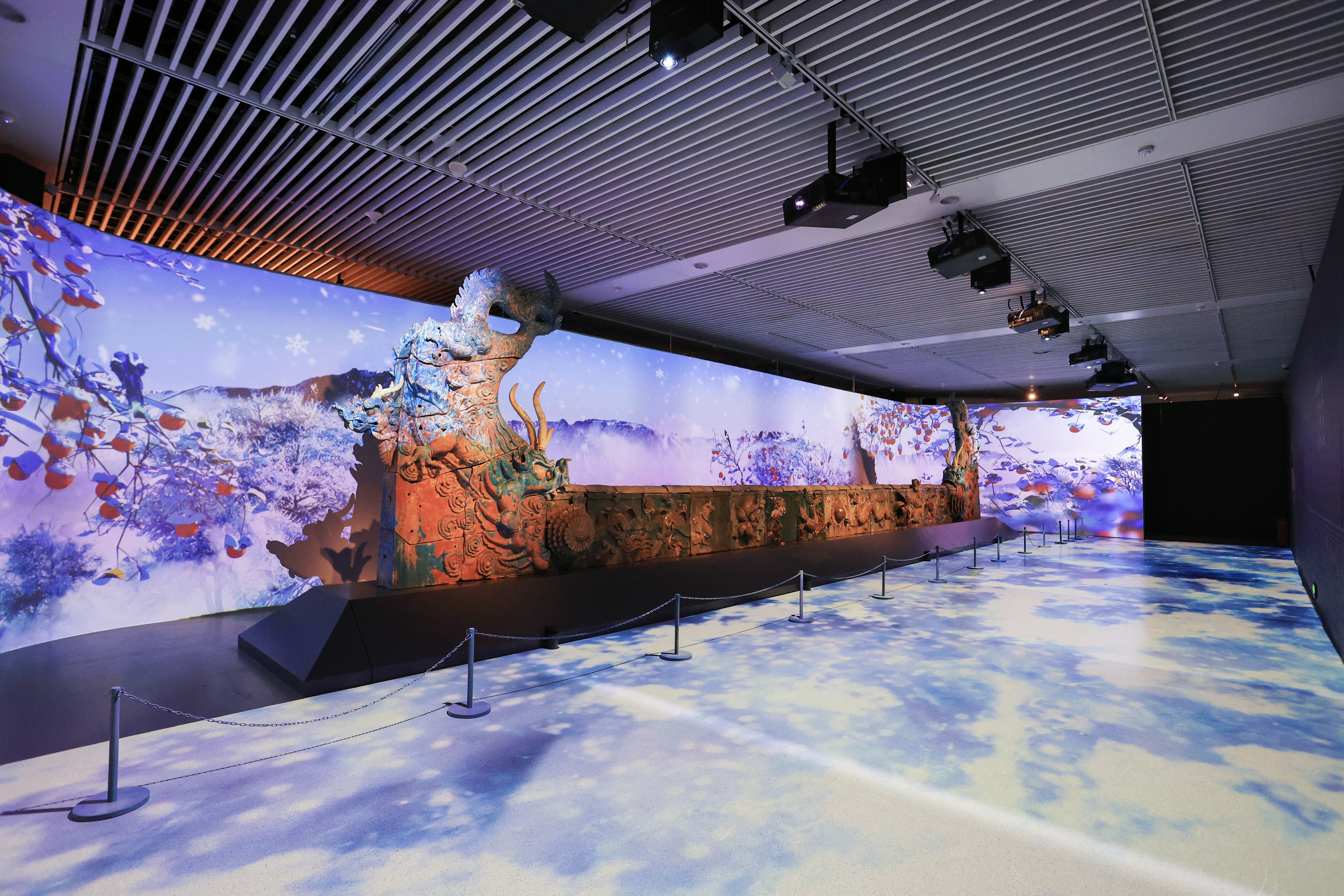 展览还引入VR大空间技术,观众佩戴VR设备后,即可步入“画”中,破“壁”穿梭,通过纯阳殿“遇仙于桥,庐山放生”壁画故事开启永乐宫的奇遇;探索期间,观众既能飞临永乐宫,与五脊六兽对话互动,还能零距离自由探索三清殿精美绝伦的殿内空间,领略建筑之美;值得一提的是,观众还可化身数字画师协助传奇晋南派画师领军人物朱好古创作永乐宫壁画,同游盛典,收获一段真切可感的艺术幻境之旅。