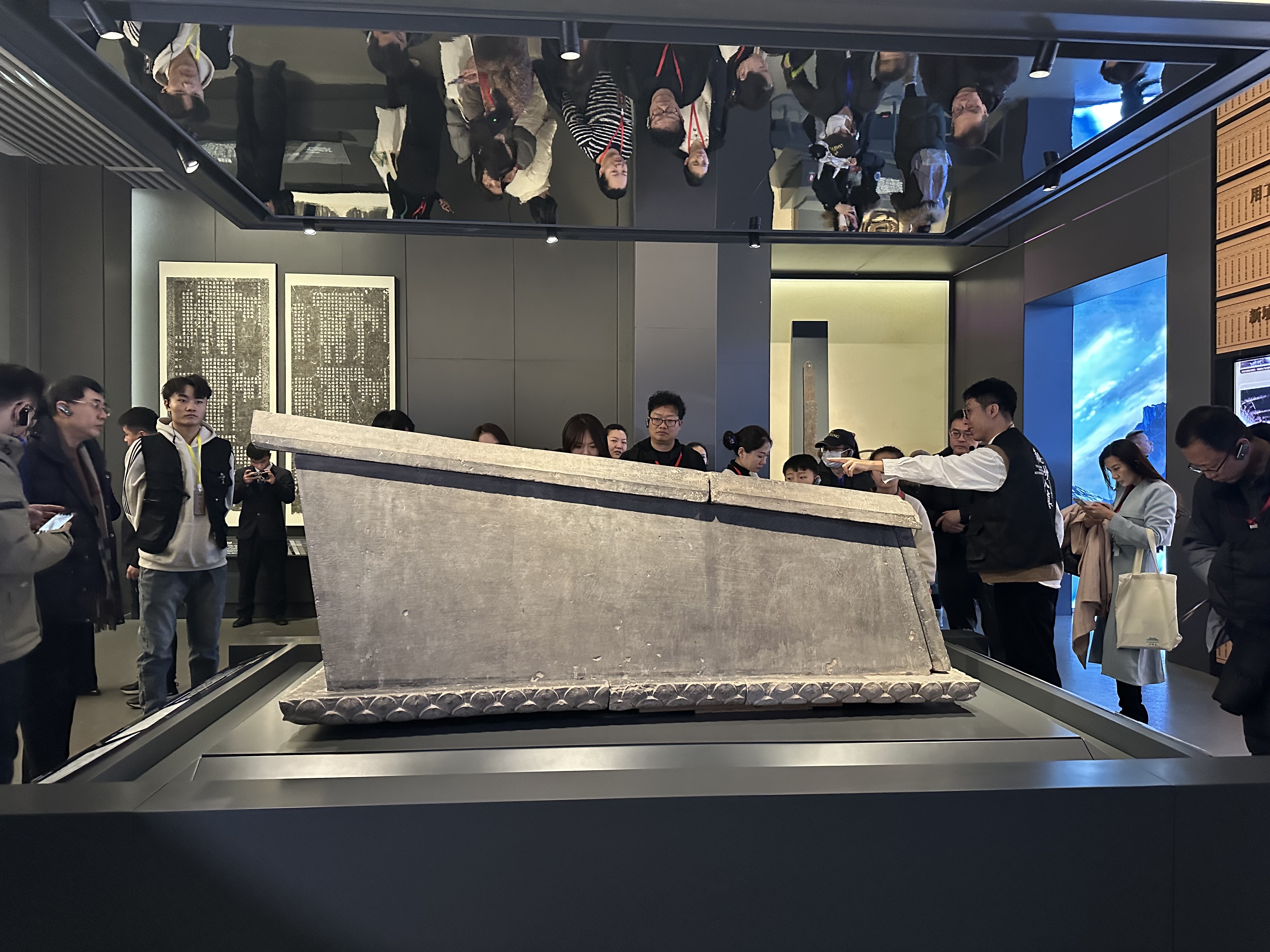 图为首次展出的披云真人宋德方石棺。新华网 李欣摄。