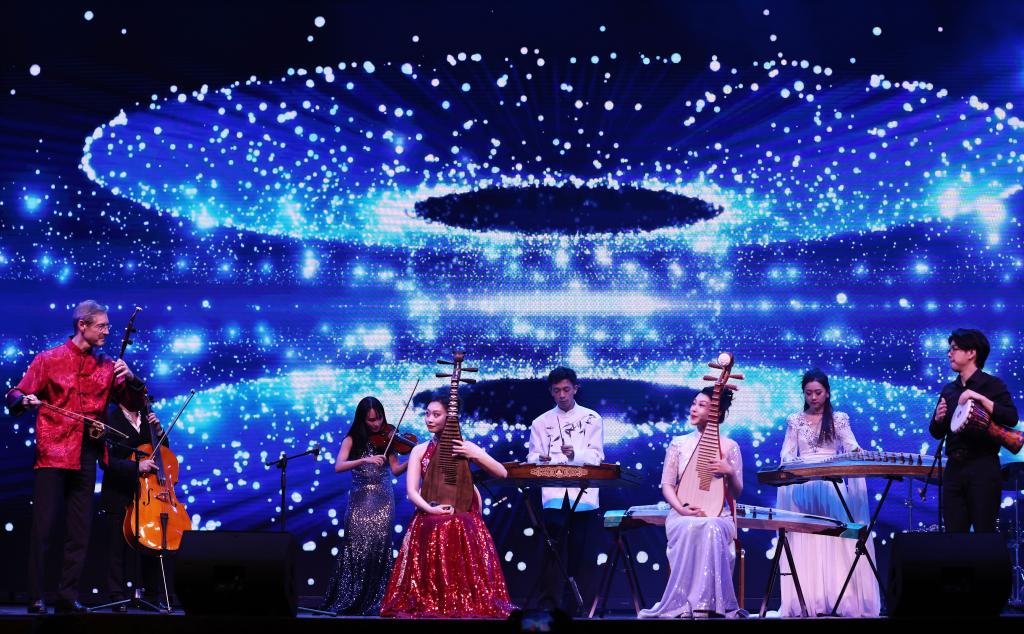 当地时间20日晚,“金蛇献瑞”巴黎春节联欢晚会在法国巴黎莫加多剧院举行。晚会上,中西室内乐合奏《兰亭序》、中法青少年合唱《歌声与微笑》、全体演员合唱《难忘今宵》等多个中西合璧的演出将现场气氛一次次推向高潮。