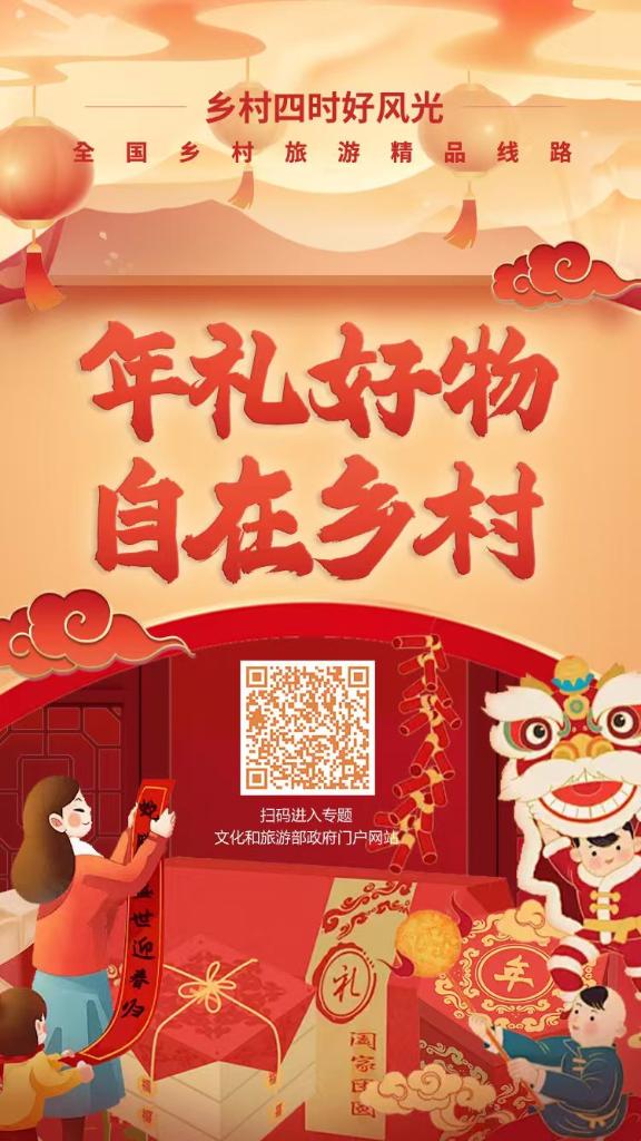 为丰富春节假期优质文化和旅游产品供给,文化和旅游部推出90条“年礼好物 自在乡村”主题精品线路,重点推荐有历史文化传承、创新创意设计的乡村集市、年俗活动、文创年礼,串联具有时令特点和年节氛围的特色民宿、文化体验活动、消费促进活动,打造游购结合的乡村假日体验。